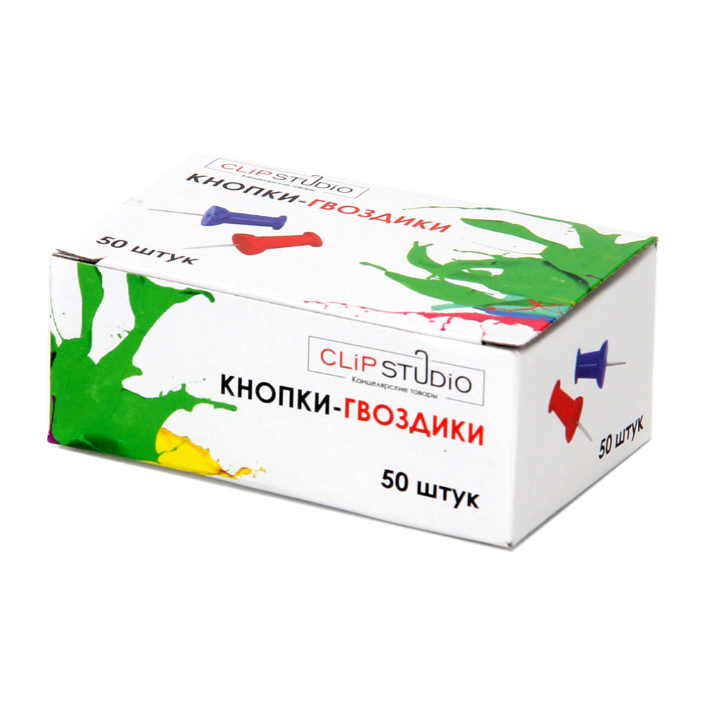 ClipStudio Кнопки-гвоздики цветные, 50шт в картонной коробке