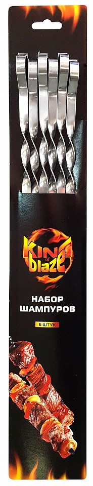 King of Blaze -набор шампуров 6 шт в конверте 45 см - шампура идеально подходит для приготовления курицы, мяса, рыбы, овощей на костре, в мангале, в жаровне. Удобная и экономичная картонная упаковка.