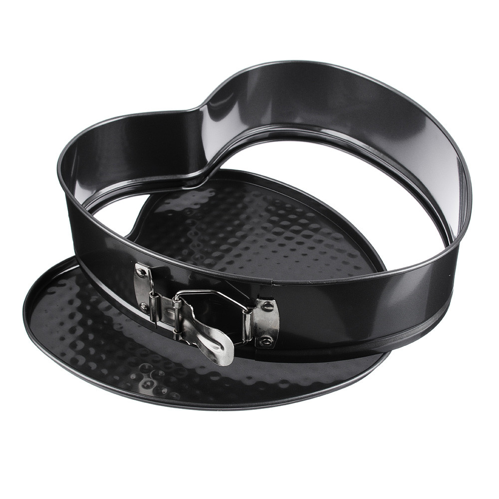 Набор из 3 разъемных форм для выпечки размерами: квадрат - 28х6,5 см, круг - d 26х6,5 см, сердце - 21,5х20,5х6,5 см, изготовлены из углеродистой стали с 2-х слойным антипригарным покрытием изнутри и снаружи и предназначены для использования в духовых шкафах.