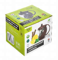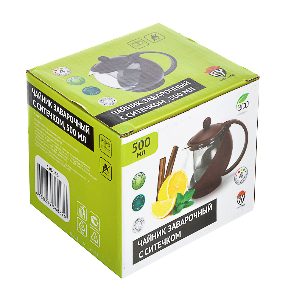 Заварочный чайник объемом 500мл из стекла в пластиковом корпусе, с ситечком из нержавеющей стали, подходит для заваривания чая и трав.
