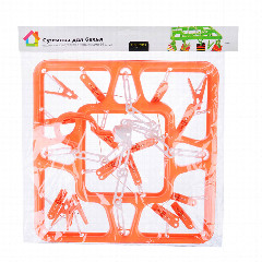 Сушилка для белья подвесная квадратная с прищепками 16 шт., пластик, 3 цвета, арт.043