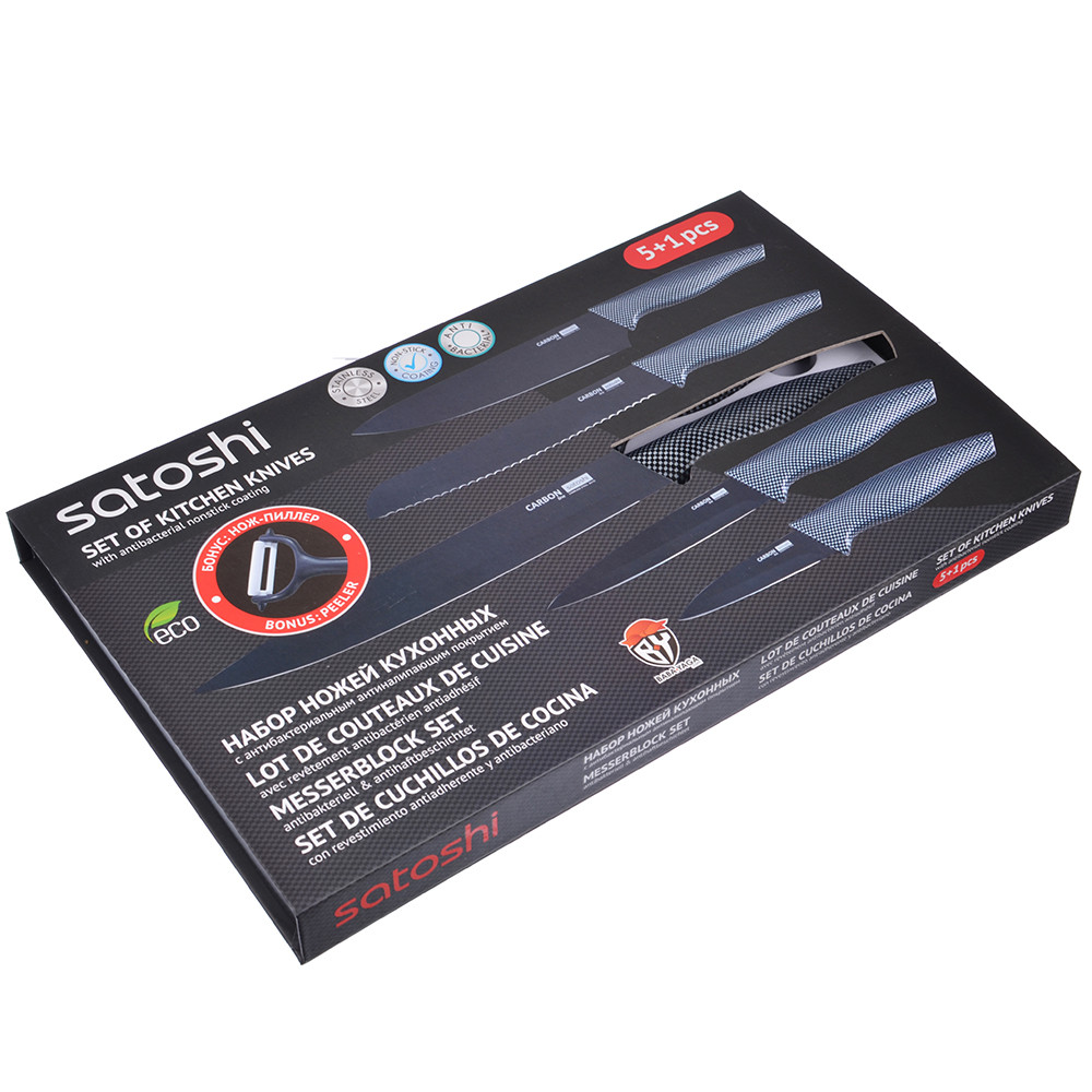 SATOSHI Карбон Набор ножей кухонных 6пр, в магнитной коробке