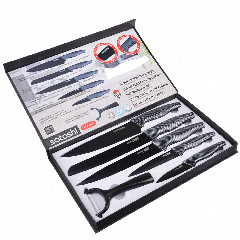 Длина лезвия Шеф нож - 20 см, Нож для хлеба - 20 см, Слайсер - 20 см, Универсальный нож - 13 см, Нож для овощей - 9 см, Овощечистка с керамическим лезвием