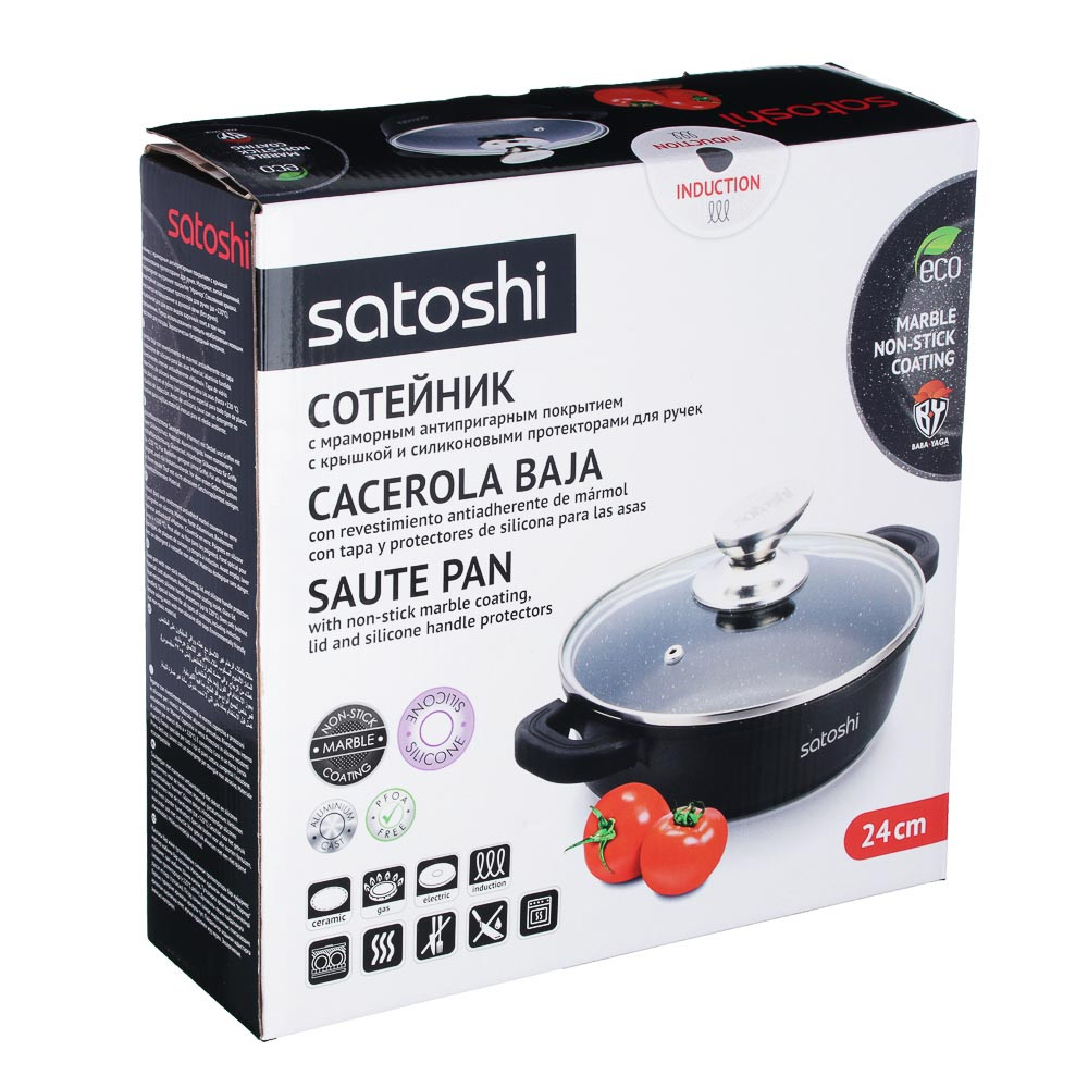 SATOSHI Лион Сотейник с крышкой 2,5л d24х7см, а/приг.покр.Мрамор, силик.протекторы ручек, индукция