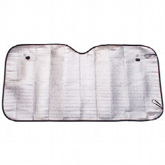Двусторонняя солнцезащитная шторка размером 130x60 см защитит от попадания солнечных лучей со стороны лобового стекла в салон машины. Серебристая поверхность шторки отражает солнечные лучи, предотвращает их попадание в салон и защищает торпеду автомобиля от нагрева.