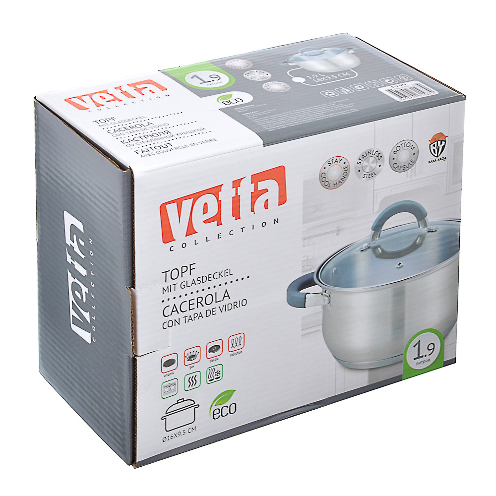 VETTA Вена Кастрюля 16х9,5см. 1,9л. со стекл. крышкой, индукция