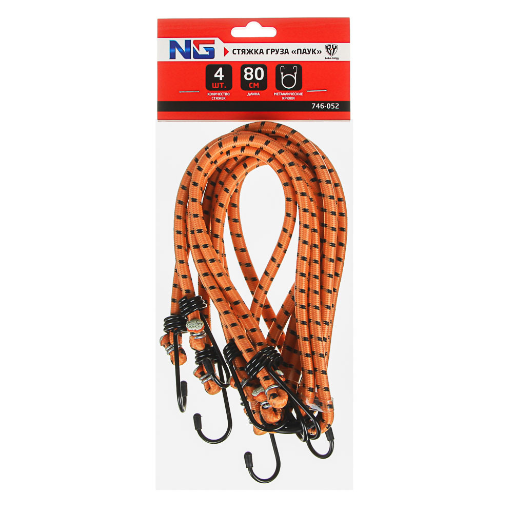 NG Стяжка груза 4шт, 0,8м, 8мм, "паук" металлические крюки