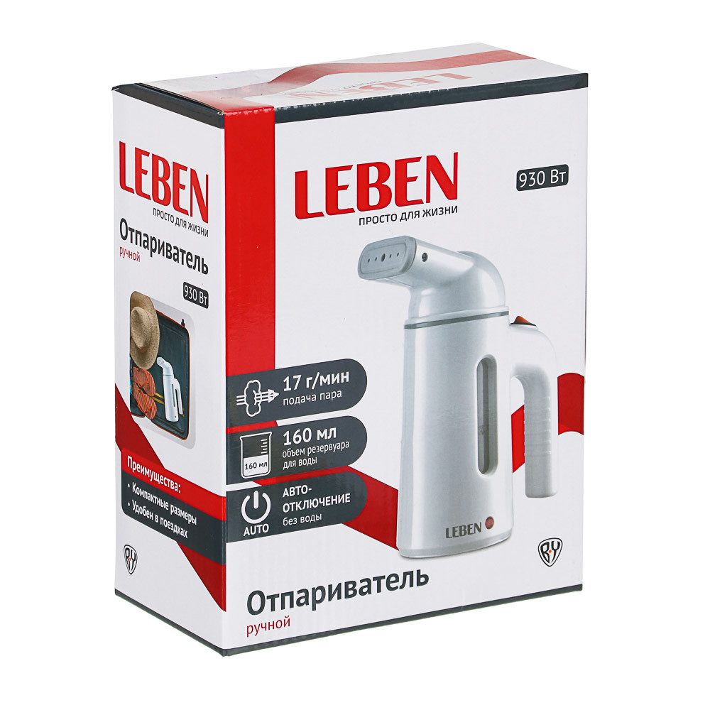 LEBEN Отпариватель ручной, 930Вт, 17гр/мин, объем 160мл