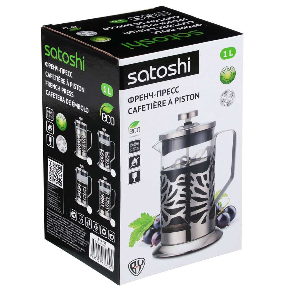 SATOSHI Гельсингфорс Френч-пресс 1000мл, жаропрочное стекло, 4 дизайна