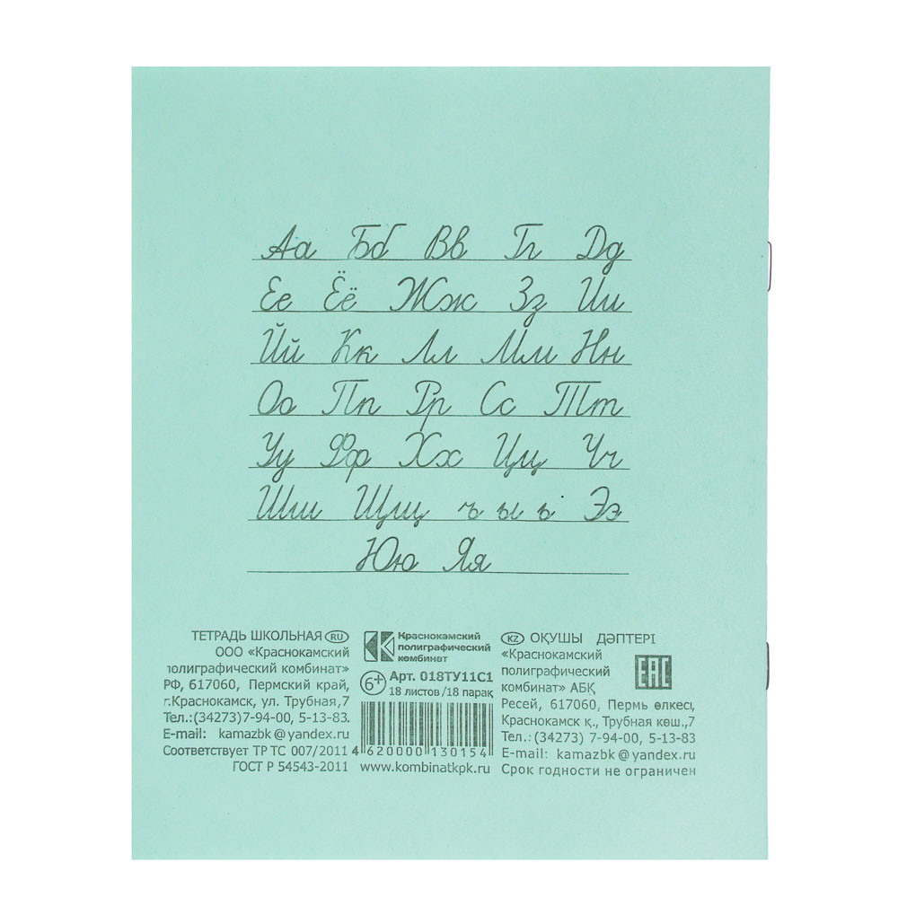Тетрадь школьная 18л. в линейку, БЕЛЫЕ ЛИСТЫ, зеленая обл., скрепка