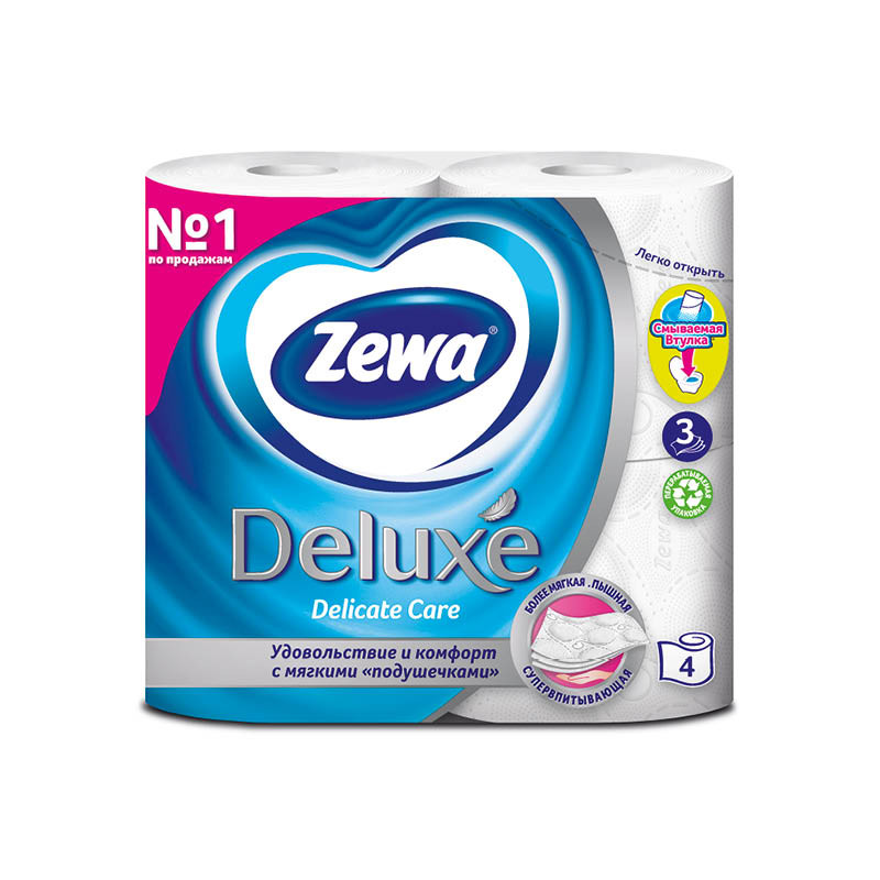 Бумага туалетная ЗЕВА Делюкс 4 рул.3-х.сл.Белая *14