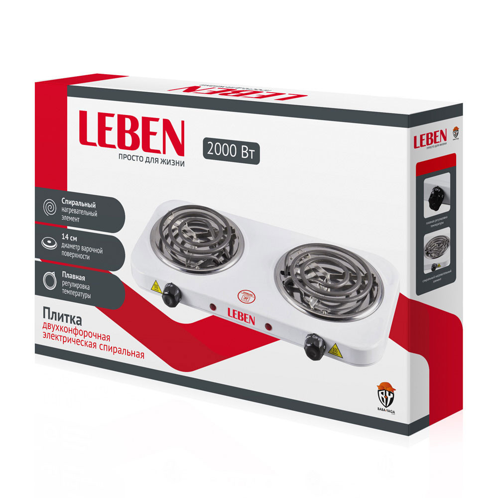 LEBEN Плитка электрическая двухконфорочная 2000Вт нагр. эл. спираль d14cм, F011